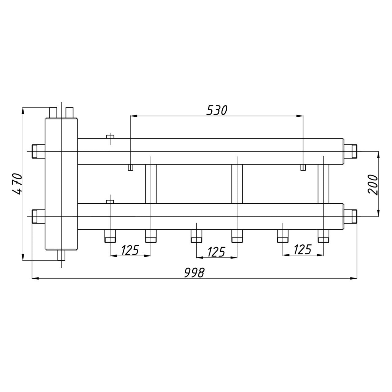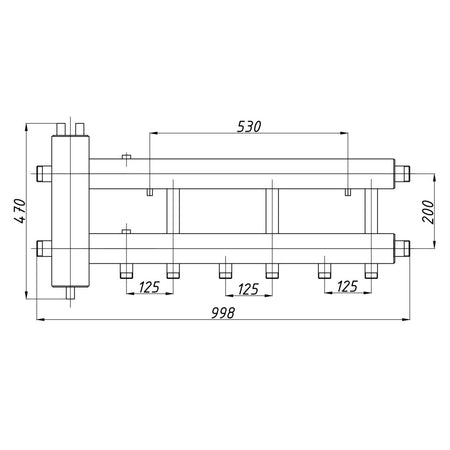 Ansamblu distribuitor + Butelie de egalizare 1 1/4" - 1", 3+1 cai, iesiri jos, Termax KSH32D125.200