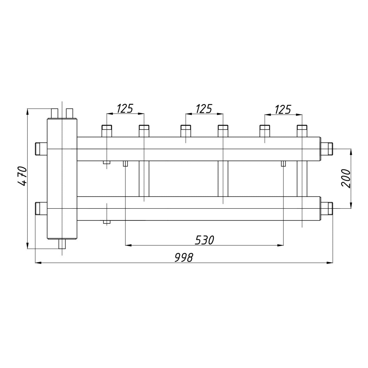 - Distanta centrala dintre tevile circuitului: 125 mm