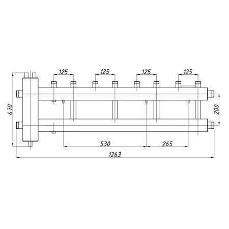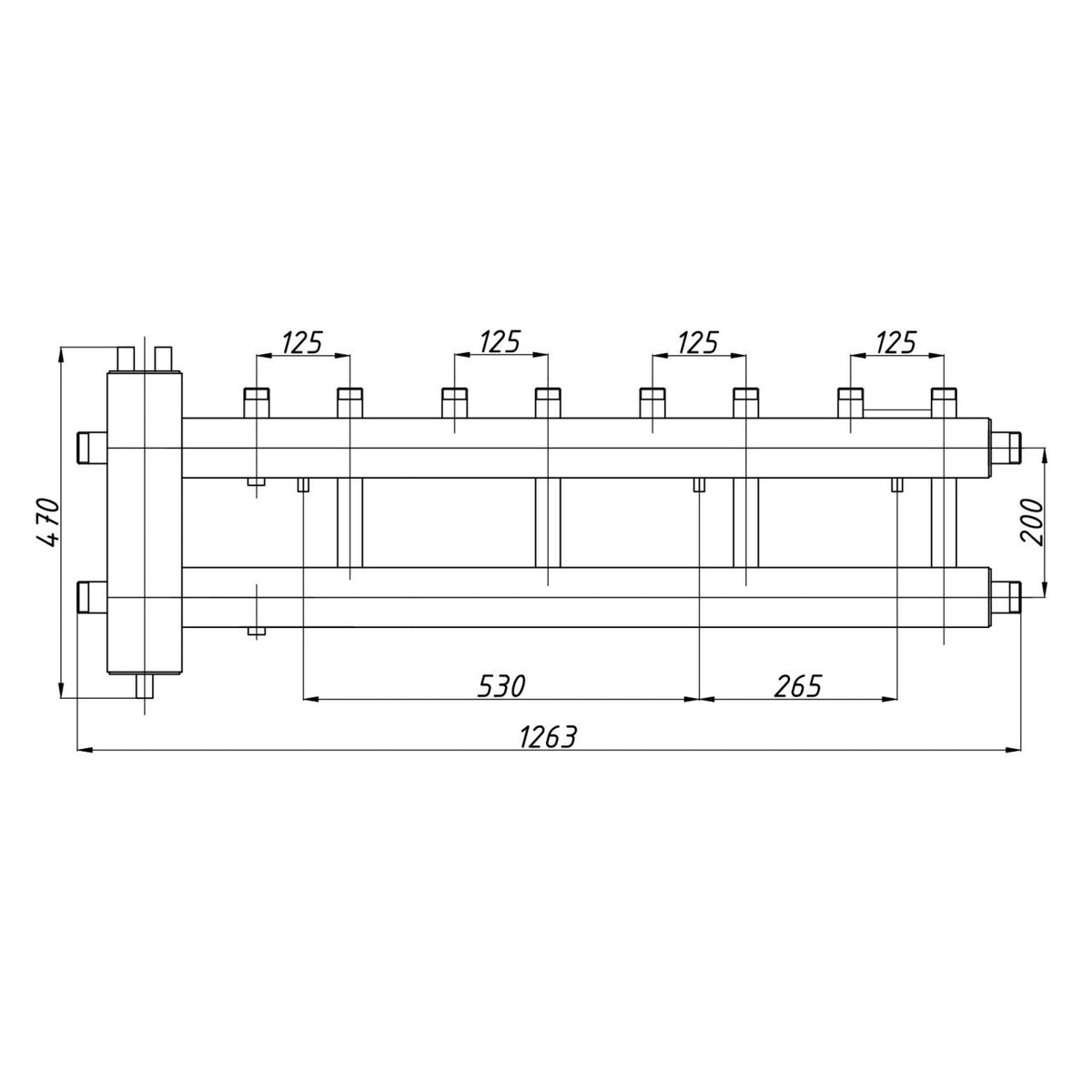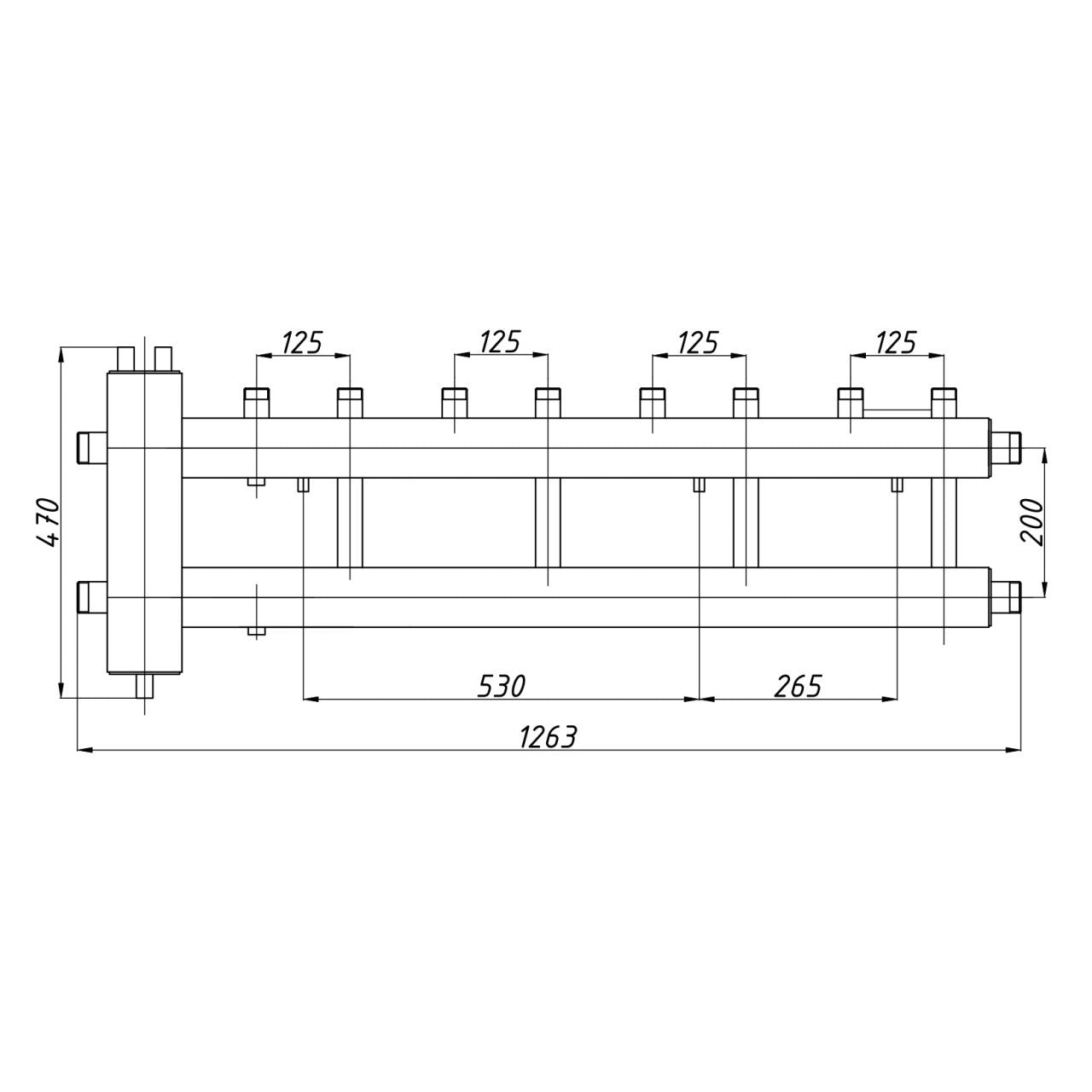 Ansamblu distribuitor + Butelie de egalizare 1 1/4" - 1", 4+1 cai, iesiri sus, Termax KSH42G125.200