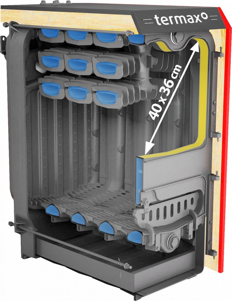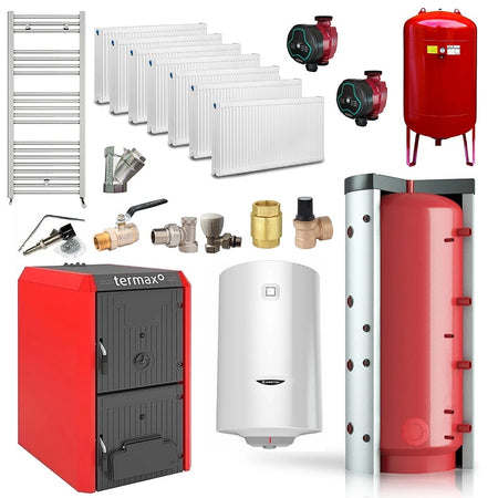 Cazanul Termax Bio 34 kW este proiectat pentru incalzirea eficienta a locuintelor de pana la 210 m². Construit din elementi din fonta durabili, acesta functioneaza cu combustibili solizi precum lemnul, carbunele sau cocenii de porumb.