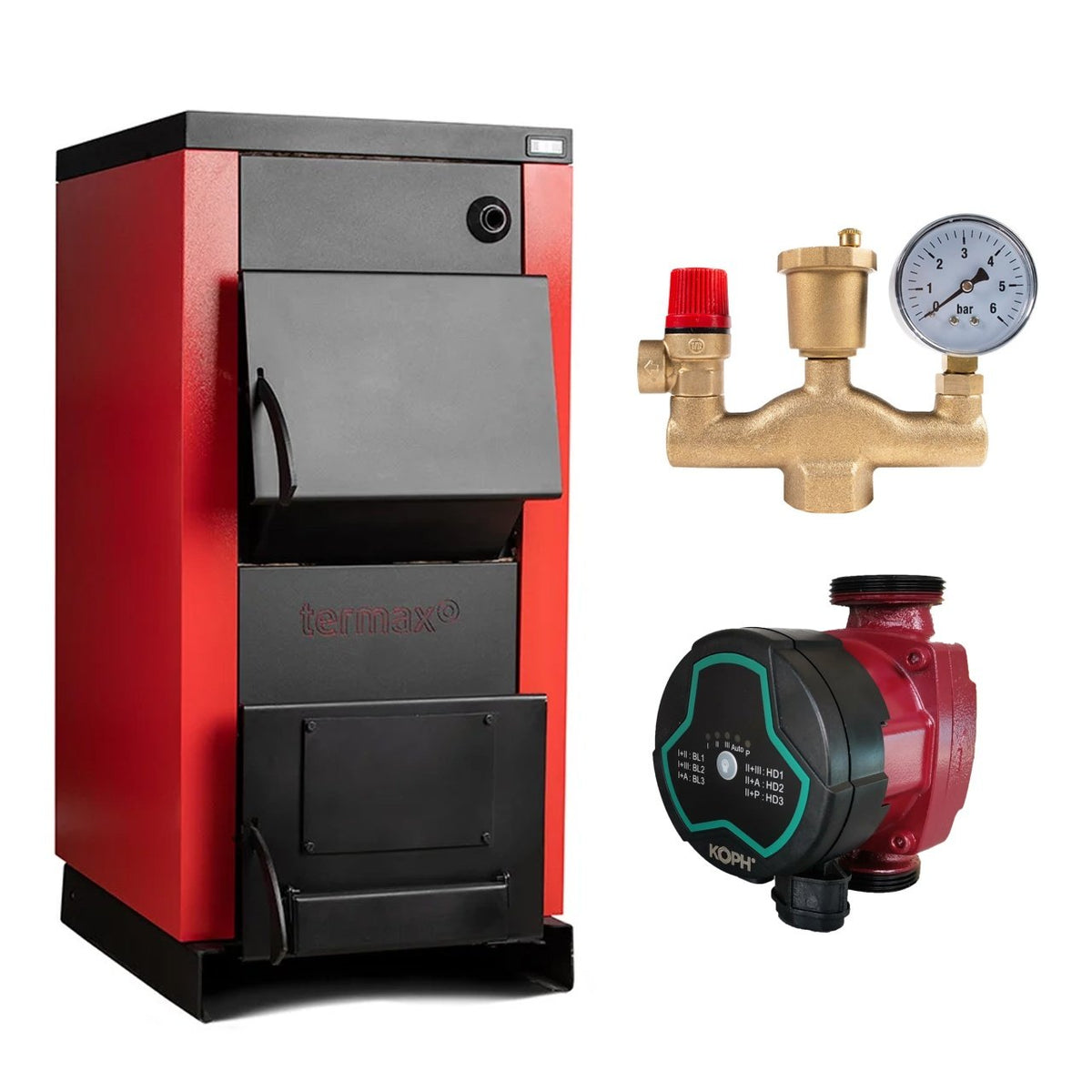Pachet centrala pe lemn Termax 40 kW cu Pompa si Grup Siguranta – Solutie completa pentru incalzire eficienta