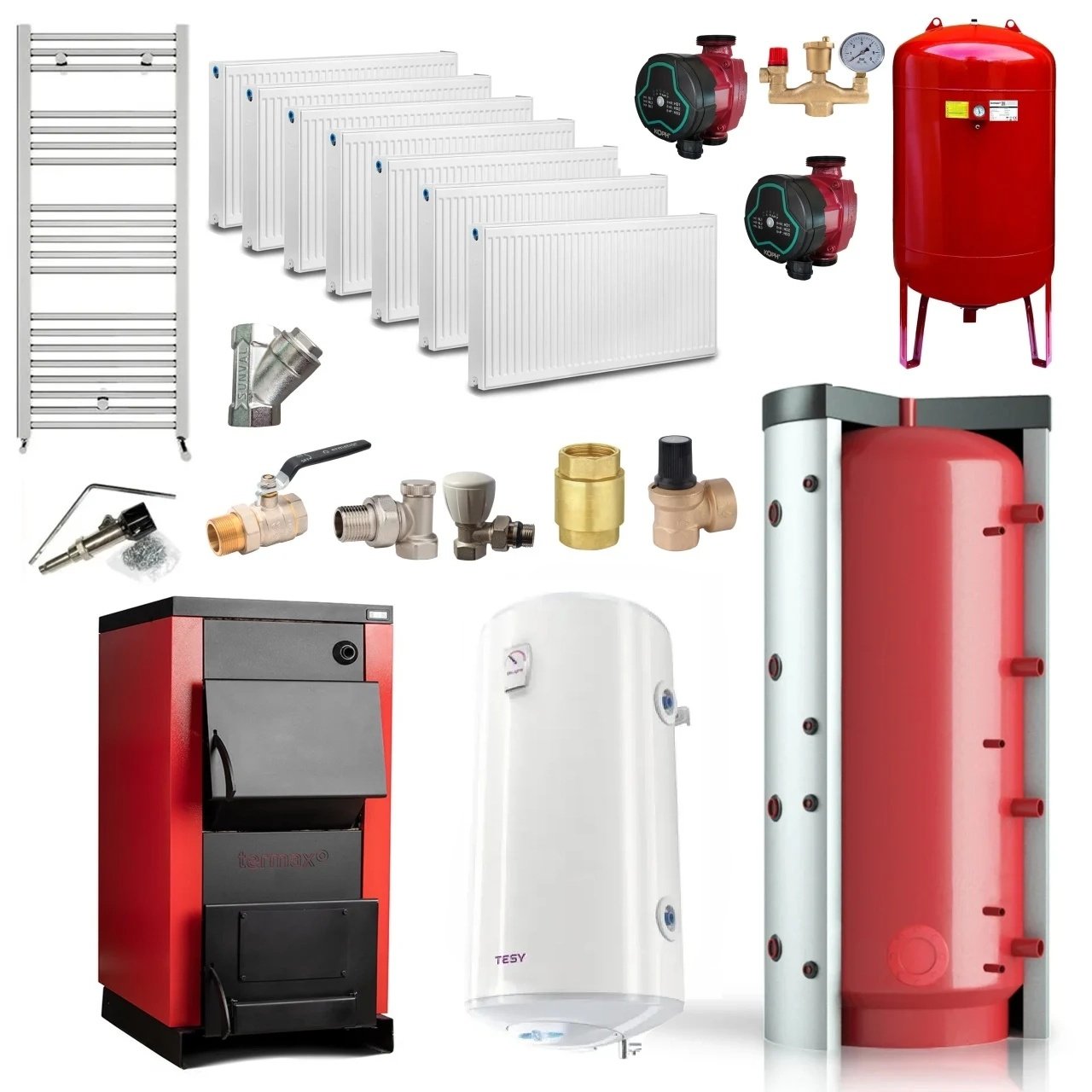 Pachet complet centrala pe lemn Termax 35 kW + boiler, vas acumulare si calorifere ➜ Solutie ideala pentru incalzirea intregii locuinte