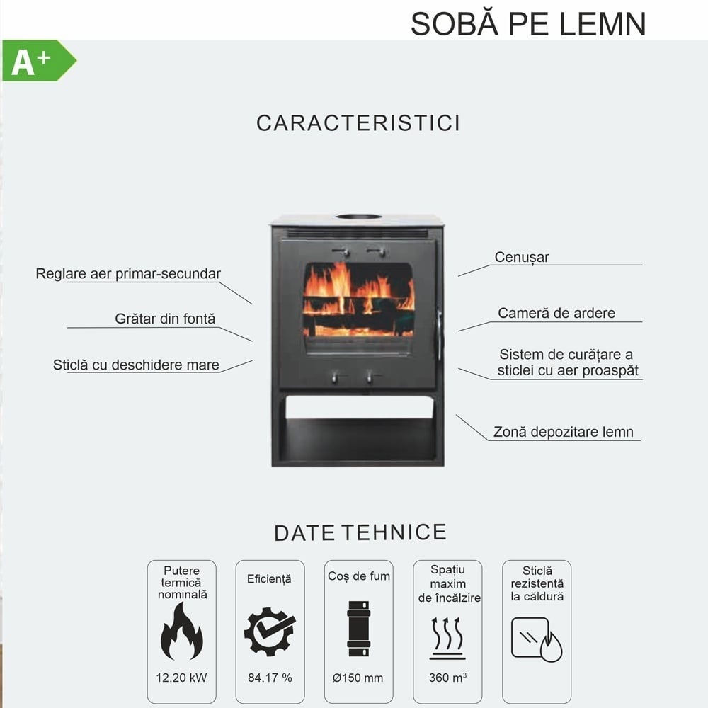 Cu o putere nominală de 12.2 kW și o eficiență de 84.17%, este ideală pentru încălzirea a până la 80 m². Soba combină calitatea superioară, aspectul modern și funcționalitatea care satisface nevoile casei moderne.
