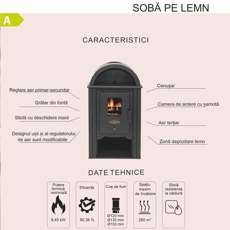 - Diametrul tevii de evacuare a cosului de fum: 120 mm