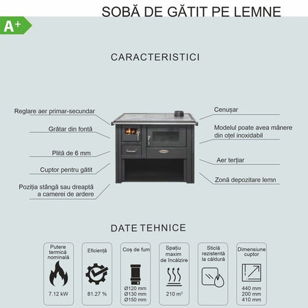 Termax Nobil este o soba pe lemne moderna si practica, ideala pentru cei care doresc sa imbine confortul termic cu utilitatea zilnica a gatitului. Cu un aspect rafinat si materiale de calitate, se potriveste perfect in orice bucatarie sau spatiu de locuit.