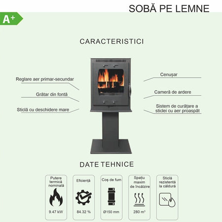 - Sistem de curatare a sticlei cu aer proaspat - Previne acumularea de funingine