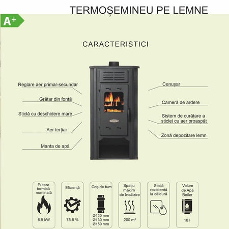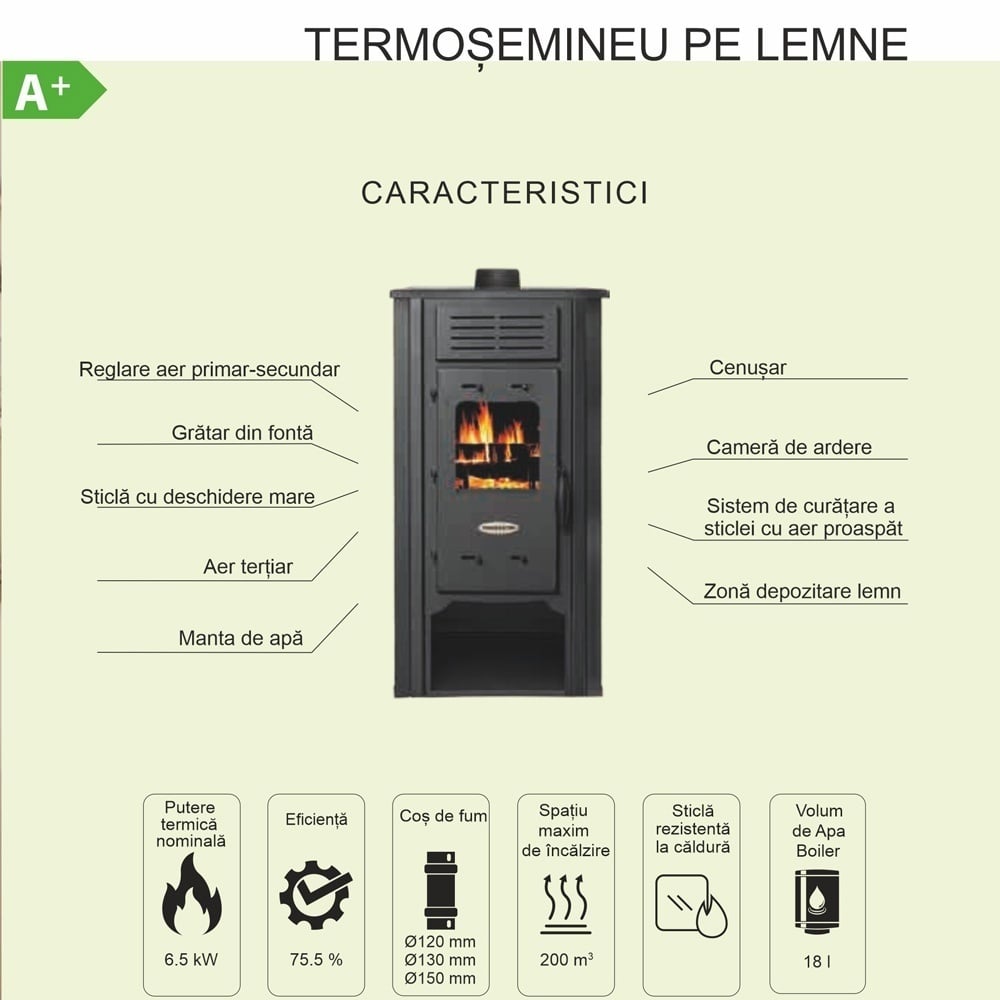 - Eficienta de 75.5% - incalzire constanta si consum echilibrat