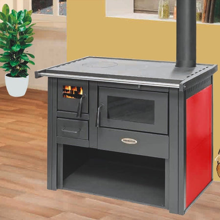 Pachet Termosoba pe lemn Termax Culina, 12.05 kW, evacuare pe dreapta, cuptor integrat, randament 85.29%, 80 m², Rosu – Incalzire, gatit si confort termic complet