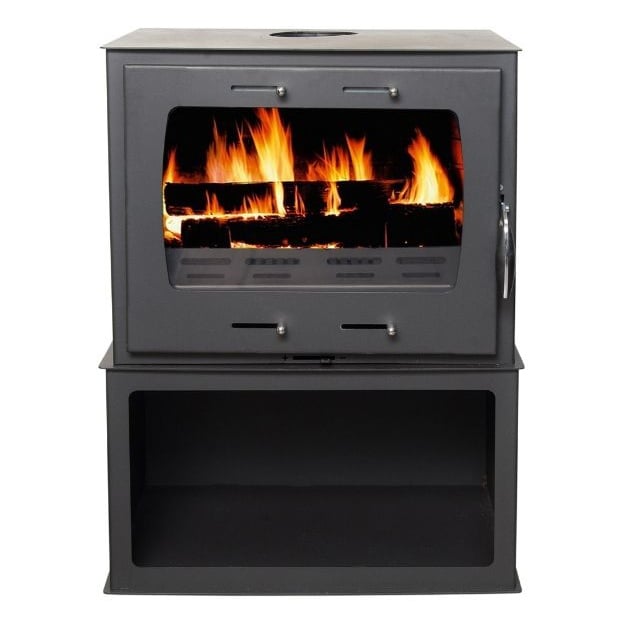 Geamul frontal generos și ferestrele laterale oferă o vizibilitate completă asupra flăcărilor, creând o atmosferă plăcută iar spațiul suplimentar de depozitare a lemnelor adaugă caracter practic.