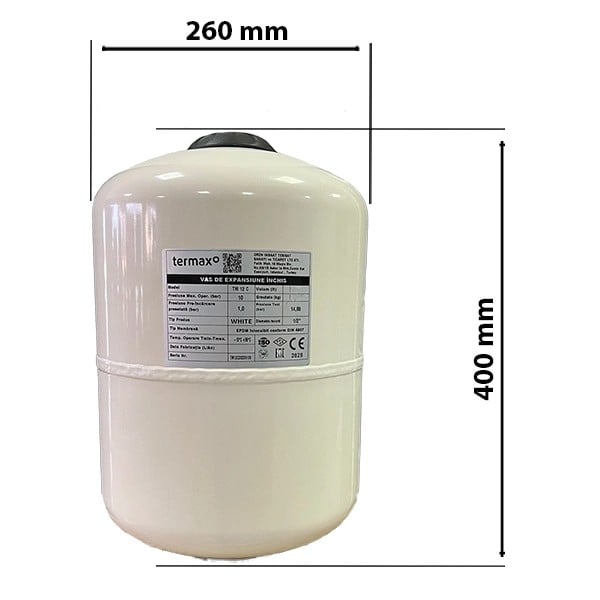 Vas expansiune 18 litri Termax pentru instalatii sanitare este conceput pentru utilizare in instalatii sanitare, avand o capacitate de a suporta o presiune maxima de 10 bar.