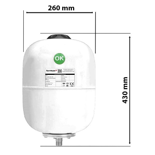 Vasul de expansiune Termax cu capacitatea de 24 litri este special creat pentru sistemele solare, capabil sa reziste la presiuni de pana la 10 bar. Echipat cu o membrana EPDM, se ajusteaza eficient la extinderea termica a apei din sistem.